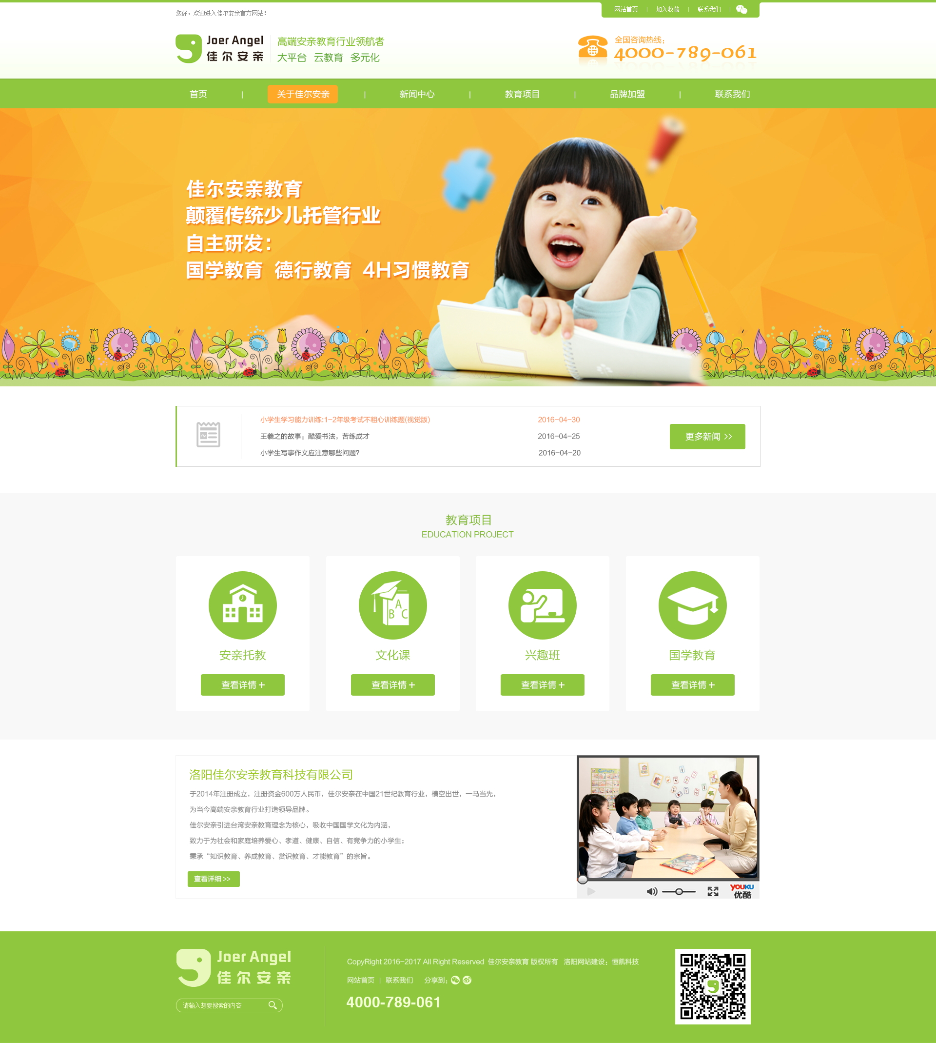 洛陽佳爾安親教育科技有限公司于2014年注冊(cè)成立,注冊(cè)資金600萬人民幣,佳爾安親在中國(guó)21世紀(jì)教育行業(yè),橫空出世,一馬當(dāng)先,為當(dāng)今高端安親教育行業(yè)打造領(lǐng)導(dǎo)品牌。