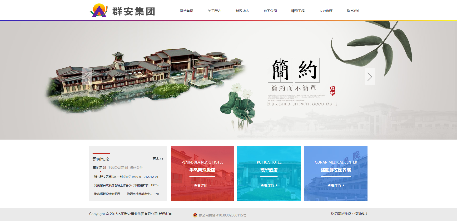 群安集團全稱洛陽群安置業(yè)集團有限公司,成立2007年7月;經(jīng)營范圍包括房地產(chǎn)開發(fā)、建筑安裝、建材貿(mào)易、餐飲酒店、醫(yī)療養(yǎng)老、物業(yè)管理、商貿(mào)管理、文化傳播、旅游服務(wù)、礦業(yè)等。